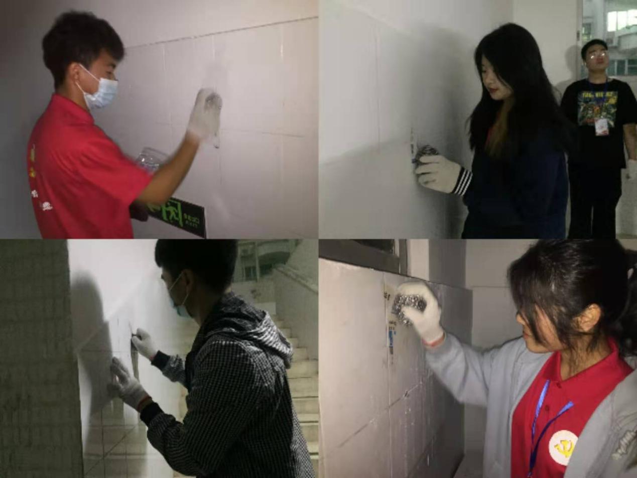 为了给同学们营造一个良好学习环境,进一步净化亮化学校容貌,彻底清除学校“小广告”,给同学们创造一个整洁优美,文明有序的学习环境,国贸学院党总支党建小组于2020年12月29日17:30,在国贸学院党总支书记隗波扬老师和第二党支部书记刘伟鑫老师以及党建小组指导老师陈晓薇老师的带领下来到12、13栋女生宿舍楼,进行了清理宿舍小广告行动。