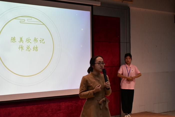 比赛结束后,会计学院团总支陈美欣书记做比赛总结发言。陈美欣书记提到,作为一个主持人,临场反应很重要,不应该只是注重主持稿,希望以后的主持人大赛更多地放在临场反应的考察上,同时提醒想往主持人方面发展的同学,要注意台上的形象,语言表达得很好,但在台上展现的形象不恰当,也会影响到整个主持效果。