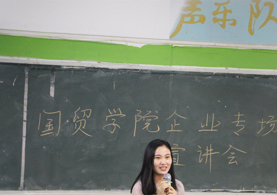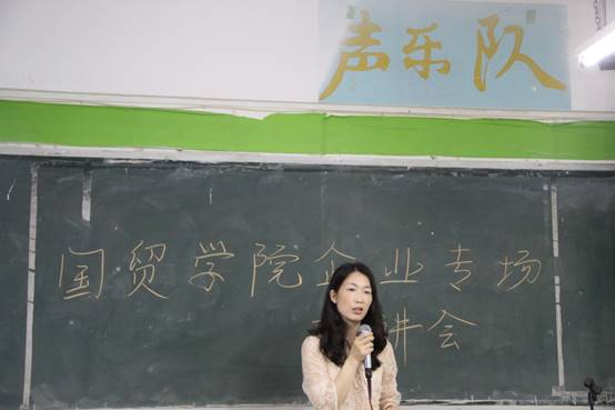 宣讲会最后一项,由国贸学院杨金玲老师讲解了她对贝乐公司的了解以及她到贝乐公司的所见所闻和体验到贝乐公司的企业文化形象等方面。