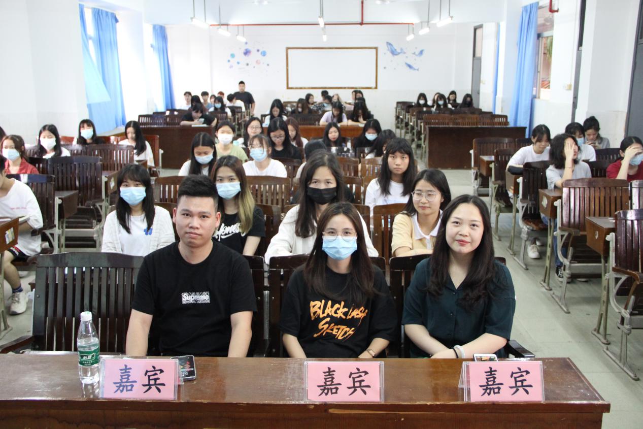 莅临本次宣讲会议的领导嘉宾分别有国贸学院校外教学李远兴老师,广州市瑞商网络有限公司人事主管 詹红叶女士,销售主管何应立先生和19商英1班、19商英2班全体同学。