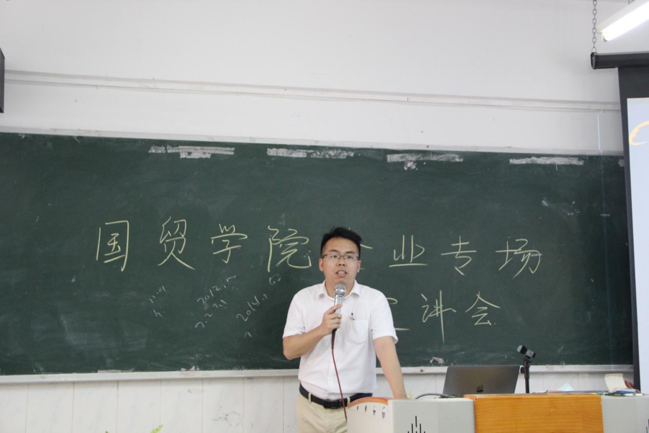 首先,由国贸学院校外教学李远兴老师介绍莅临本次宣讲会的领导嘉宾并讲话,希望同学们可以通过本次宣讲会从中体会自己对未来工作的想法和选择职业的方向。