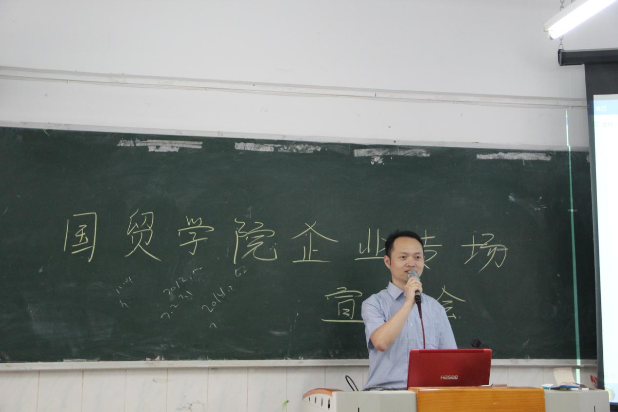 宣讲会第一项,由国贸学院校外教学李远兴老师做会前动员讲话,并介绍莅临本次宣讲会的领导嘉宾,他并表示到,希望同学们可以在本次宣讲会当中深入了解天津荣达物流有限公司广州分公司并可以明确自己的就业方向。