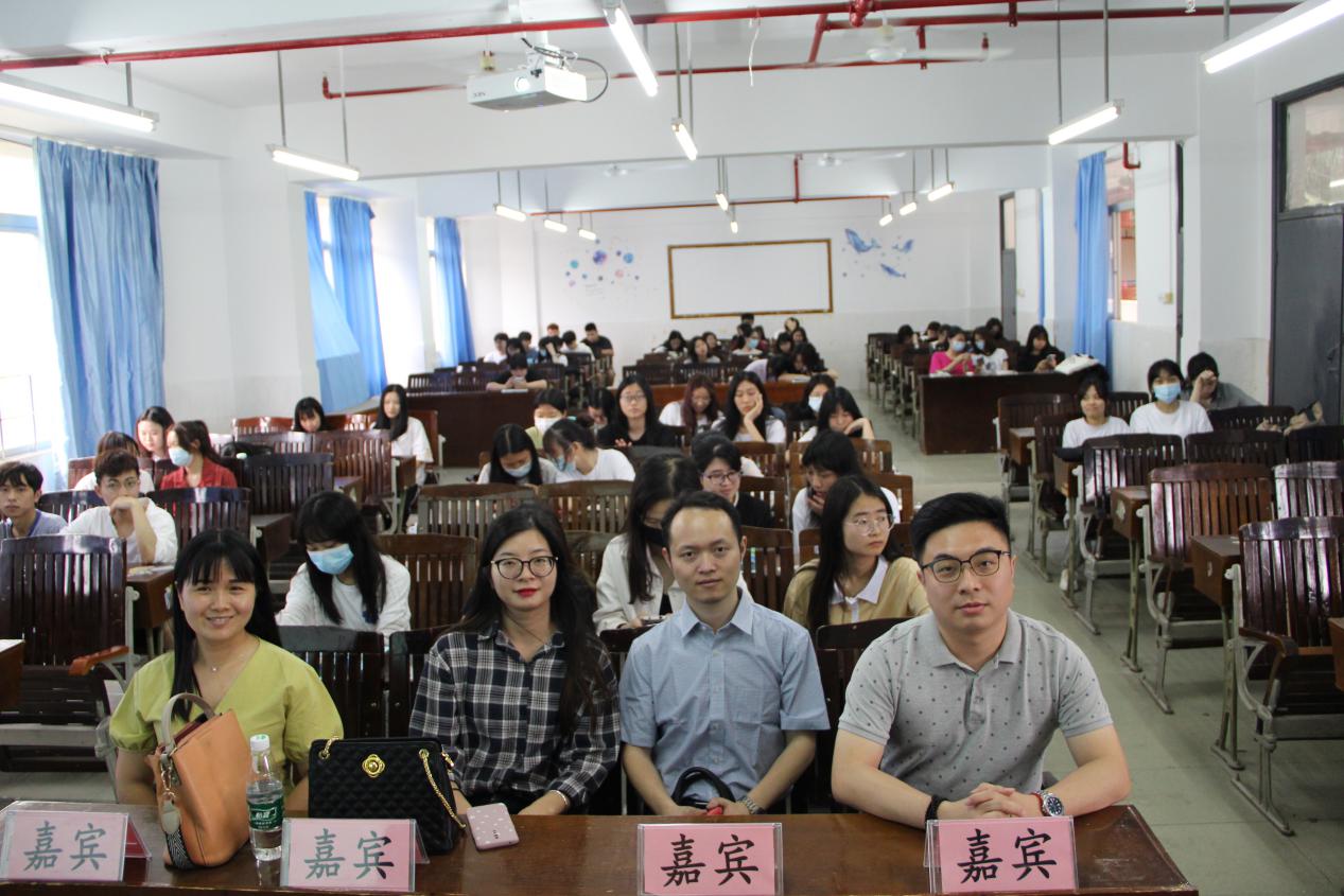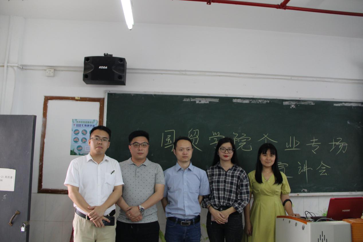 莅临本次宣讲会的领导嘉宾有国贸学院校外教学李远兴老师,天津荣达物流有限公司广州分公司副总经理何小龙先生,公司行政人事袁慧敏女士,公司项目经理余秉林先生,公司客服四部经理李兆娜女士以及19商英1班、19商英2班和国贸班全体同学。