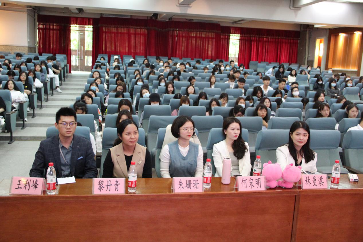首先,广州伊的家网络科技有限公司全国市场总监何宋明女士,讲到自己是如何进入广州伊的家网络科技有限公司的经历,分享了自己一年就拿到该企业的销售冠军,告诉同学们在择业的时候该去如何选择,简单的说了一些该企业的优势情况以及环境情况,给了同学们带来了很多的宝贵意见以及职场经验。