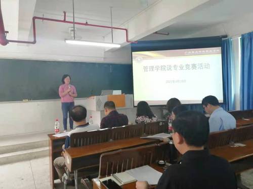 2021年4月19日下午,管理学院举行了说专业竞赛活动。本次活动是由教务处牵头,管理学院组织工商企业管理、物流管理、市场营销和电子商务四个专业展开了说专业活动。先后由物流管理吕丽静、工商企业管理王润东、市场营销康信恩和电子商务黄英等老师进行专业竞赛。为举行本次专业竞赛,学院领导高度重视,老师们都积极准备了初赛的演讲ppt和资料。