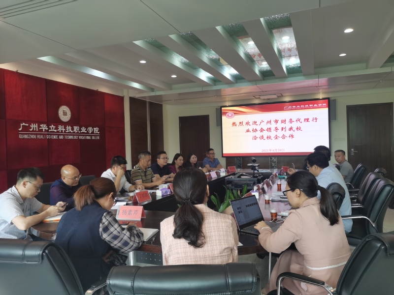 4月20日下午14:30,广州华立科技职业学院会计学院邀请广州市财务代理行业协会来我校进行校企合作洽谈,这是会计学院第一次邀请行业协会来我校进行校企合作座谈会。原国家税务总局广州黄埔区税务局副局长叶启新,广州市财务代理行业协会执行会长朱利新,常务副会长林松龙,校企合作会长吴伟虹等,我校高尧来副校长,校企合作处钟文浩处长,会计学院李哲院长等出席会议。