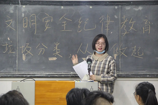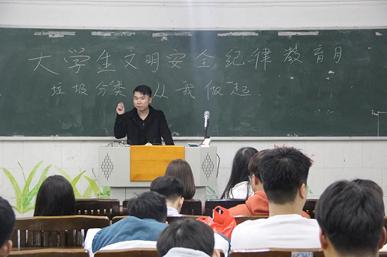 我院于2021年3月10日晚上7点,在西一教学楼四楼各多媒体教室开展了“大学生文明安全纪律教育月—垃圾分类,从我做起”的主题班会。