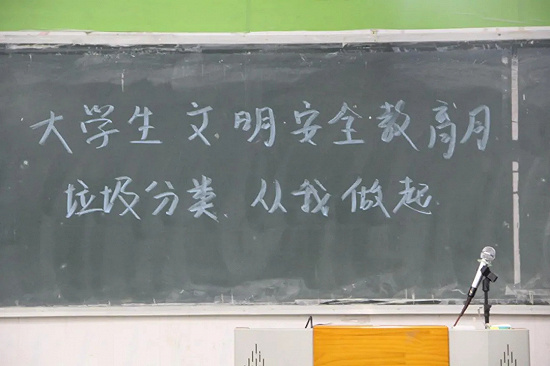 首先,郑庆国老师说我们每个人每天都产生很多垃圾,为了校园卫生干净和舒适的学习环境,号召大家行动起来,也是为了大家身体健康为出发点。还为同学们介绍在日常生活中常见的四种垃圾:一般分为厨余垃圾、可回收垃圾、有毒有害垃圾和其它垃圾。使各位同学深刻的明白了进行垃圾分类对我们的重要性.
