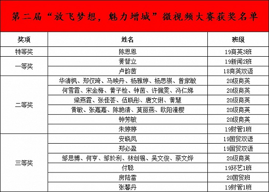 经过报名与视频作品提交、作品评选、公布结果及公示三阶段,第二届“放飞梦想,魅力增城”微视频大赛圆满结束。