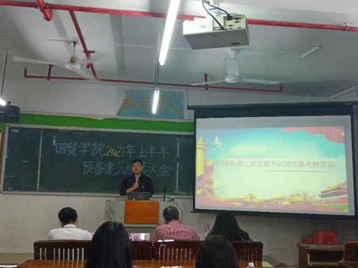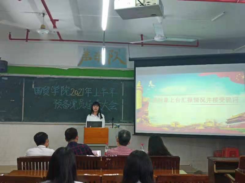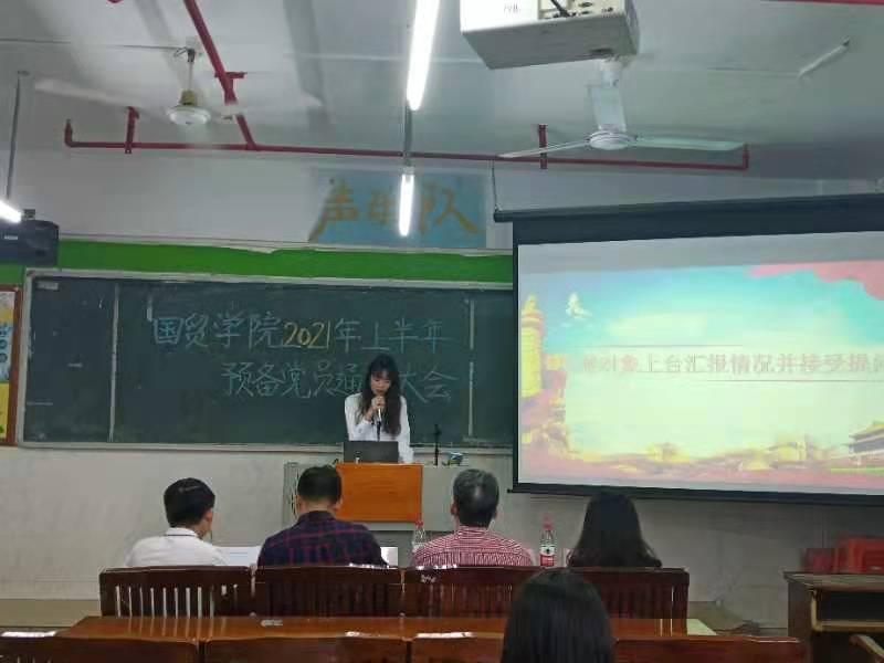 2021年4月8号上午11:00,国贸学院党总支在西一409召开了发展预备党员通表大会。出席本次大会的老师分别有:国贸学院党总支书记隗波扬老师,国贸学院第二党支部书记刘伟鑫老师,国贸学院郑庆国老师,国贸学院党建小组指导老师陈晓薇老师。本次大会由国贸学院党建小组信息部干事丁心悦主持会议。