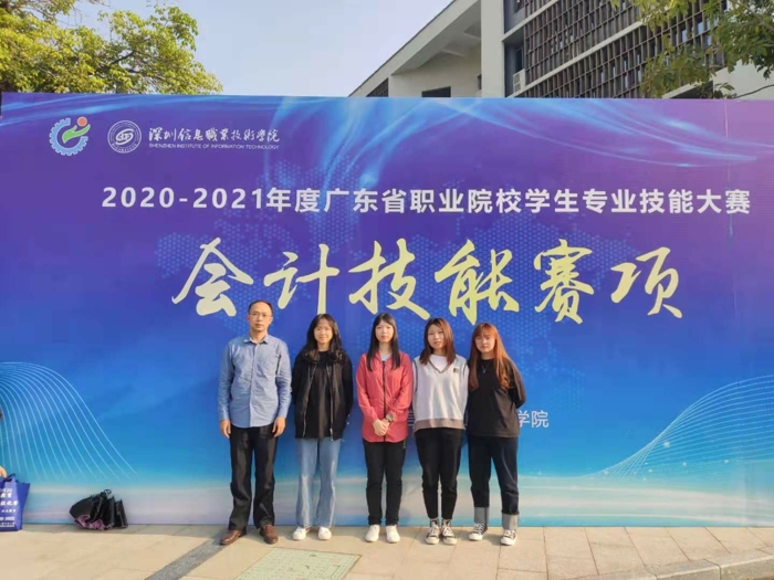 2021年3月27日,由广东省教育厅主办的2020-2021年度广东省高等职业院校技能大赛“会计技能”赛项在深圳信息职业技术学院举行,此次比赛共有全省68所院校派出的68支代表队。我校派出了由冷长恒、何玉冰老师担任指导老师,会计专业梁雅婷、梁紫惠、黄媚、王金婷四位同学组成的代表队参加比赛。我校选手沉着应战,团队成员分工明确、密切配合,发扬团队协作精神,经过激烈角逐,最终取得了第14名的好成绩,荣获二等奖。