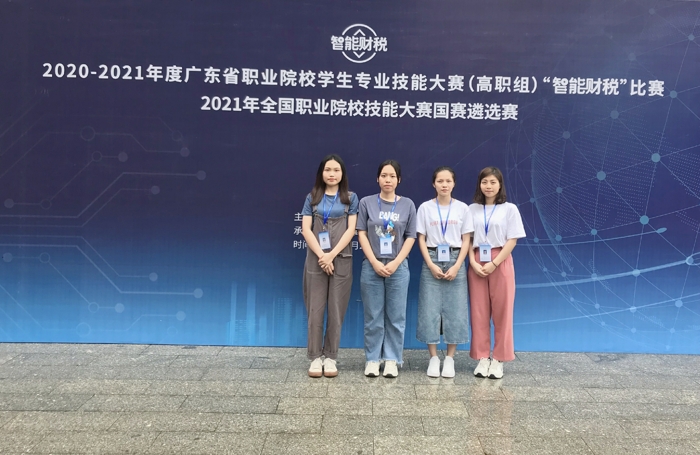 “智能财税”为今年新增赛项,从4月9日接到通知后,会计学院高度重视,由系主任何玉冰老师牵头,陈汉成、马瑞华两位老师指导,在短短十几天的时间里,完成组队、队员筛选、制定集训方案、分岗定制集训内容后,确定由19会计1班刘嘉敏、郑漫佳和19会计7班郑宇霞、谢泳欣四位同学参赛,经过紧锣密鼓的高强度训练,在师生的密切配合和刻苦坚持下,出色地完成了比赛。