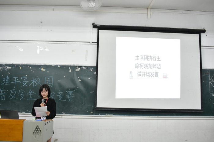 首先由会计学院学生会执行主席柯晓龙做开场发言。她表示:举办校园安全知识竞赛是为了构建和谐校园,校园安全是构建和谐社会重要组成部分,加强安全教育是学校教学和其他工作顺利进行的有力保证,是确保学校和师生人身财产安全的重要因素,更是创建平安和谐校园的重中之重,加强安全知识教育,总结出有效的途径和方式,从而确保学校学生安全的高度稳定,保障学校教书育人的平安和谐氛围,希望同学们一定要认识校园安全的重要性。