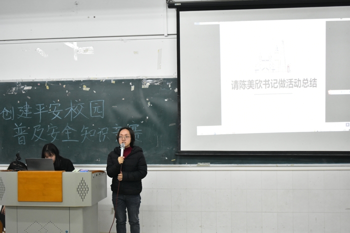 陈美欣书记在总结中讲到,举办知识竞赛是为了在课余生活的前提下,多了解有关安全方面的知识。另外,同学们在积极参加活动、丰富课余生活提升自身能力的同时,也要努力学习,把学业放在首位,让自己得到全面的提升。