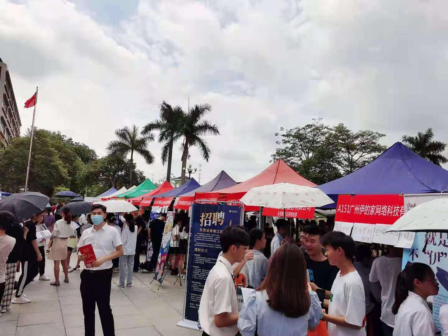 参加本次校园招聘会的有来自粤港澳大湾区的多家知名企业及众多校企合作企业。如中国联通、广州伊的家网络科技有限公司、九易集团、深圳华运物流有限公司、增城地摊总部园等多家企业。国际经济与外语学院的商务英语、金融、证券和国贸专业近四百名学生参加了此次求职盛会。