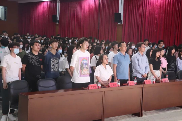 组织部负责人黄鸿燊详细地为大家介绍了团的光辉历史、团章等一系列关于共青团的知识,使团员们更加深刻地认识与理解共青团的职责和担当,引导青年大学生在社会主义现代化建设的实践中,锻炼成为有理想、有道德、有文化、守纪律的共产主义事业接班人。最后,他希望各位团员学有所成、学有所用,并祝愿大家在今后的学习成长道路上取得更加优异的成绩!