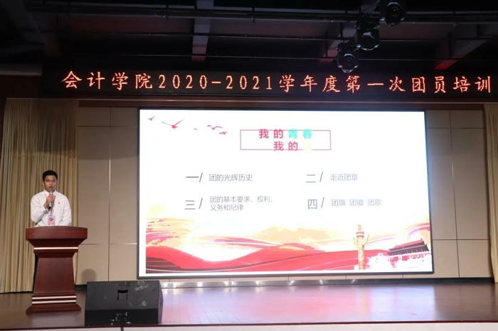 会计学院于2021年4月21日晚在图书馆八楼开展了“认真学习党团知识,争做优秀共青团员”第一期团员培训活动。本次活动莅临的领导和嘉宾有:会计学院党总支副书记陈辉老师、会计学院团总支书记陈美欣老师、会计学院辅导员陈湛通老师、会计学院实习辅导员刘嘉楣老师、会计学院实习辅导员曾文樑老师。