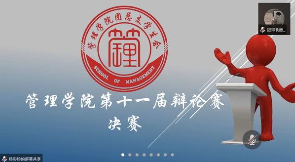 活动开始,由主持人杨彩珍介绍出席本次活动的领导及嘉宾,他们分别是管理学院团总支书记陈媛老师、管理学院辅导员戴双雅老师、管理学院辅导员张南南老师、管理学院实习辅导员赵昊宏老师、辩论协会的评委们、参赛学生及线上的观众。