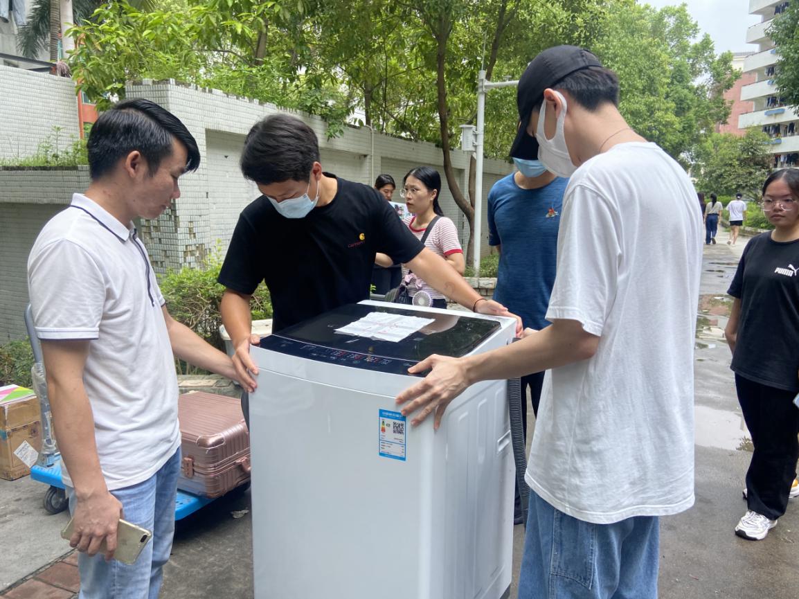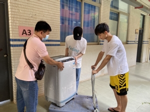 党员志愿者们在西一教学楼集合。紧接着按照小组由刘伟鑫和郑庆国老师的带领下出发前往宿舍楼帮助离校同学们搬运行李。由于离校人员众多,人流量非常大,当同学们遇到困难时,我们的党员志愿者第一时间上前替同学们分担行李。虽然志愿者们工作量大、任务繁重,但大家丝毫没有懈怠,在老师的带领下认真、出色的完成了任务。