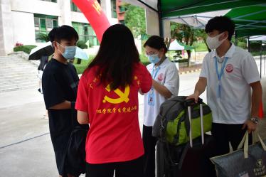 迎新工作如火如荼、众多的志愿者微笑相迎:协助注册报道、搬运行李等,忙碌的身影穿梭在校园的各个角落。团委学生会和党建小组的师兄师姐们不厌其烦地回答新生、家长提出的问题。不少团委学生会和党建小组的师兄师姐主动帮着拎行李,一路谈笑风生。新生细声地叫着“师兄师姐”,老生们也开心地介绍学校的风采。