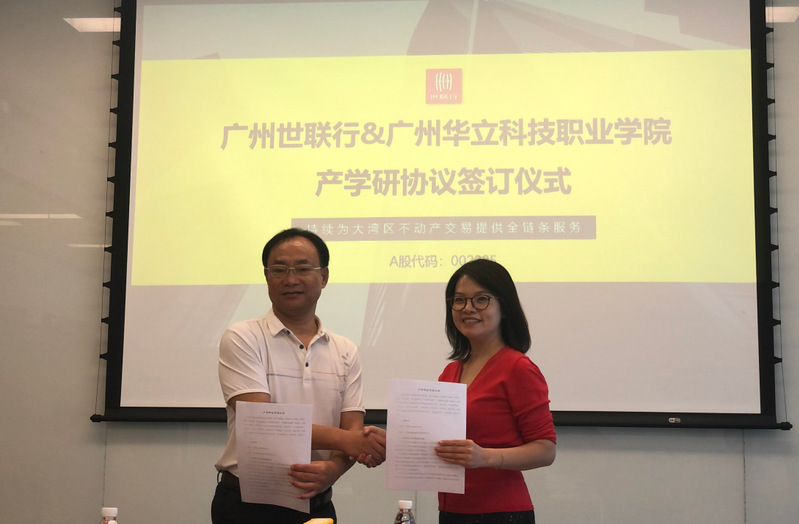 为进一步推进产教融合,深化校企深度合作,探索校企合作的长效机制。2021年9月14日上午,广州华立科技职业学院与广州世联房地产咨询有限公司开展产学研协议的签定活动。我校校长助理郭仲先、管理学院院长温伟胜、学校校企处处长钟文浩、校外教学副主任吴小宇,广州世联人力行政总监吴小薇、广州世联人才发展部总监张楠及我院2019级实习生等参加了此次签定仪式。