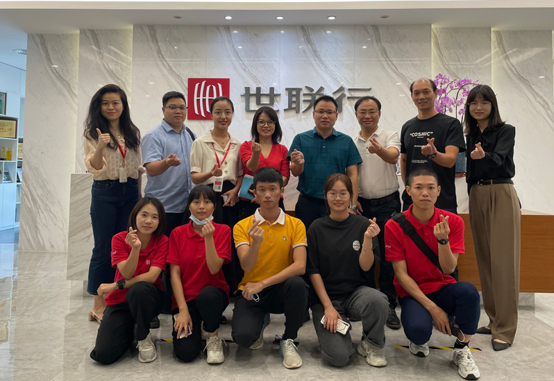 2021年9月14日,在中秋佳节来临之际,广州华立科技职业学院校长助理郭仲先、管理学院院长温伟胜、学校校企处处长钟文浩、校外教学副主任吴小宇等老师到广州世联房地产咨询有限公司看望2019级在岗实习的学生,开展中秋节慰问活动。广州世联人力行政总监吴小薇对我校一行的到来表示热烈的欢迎,并带领我校一行参观实习工作环境。