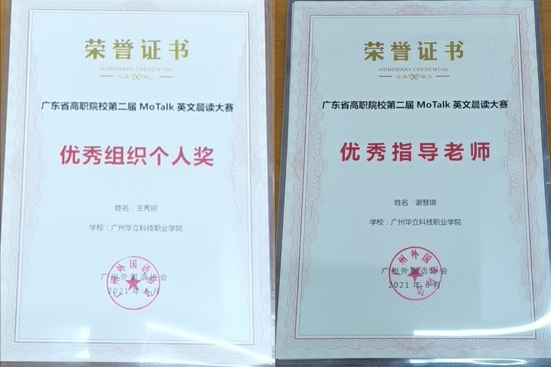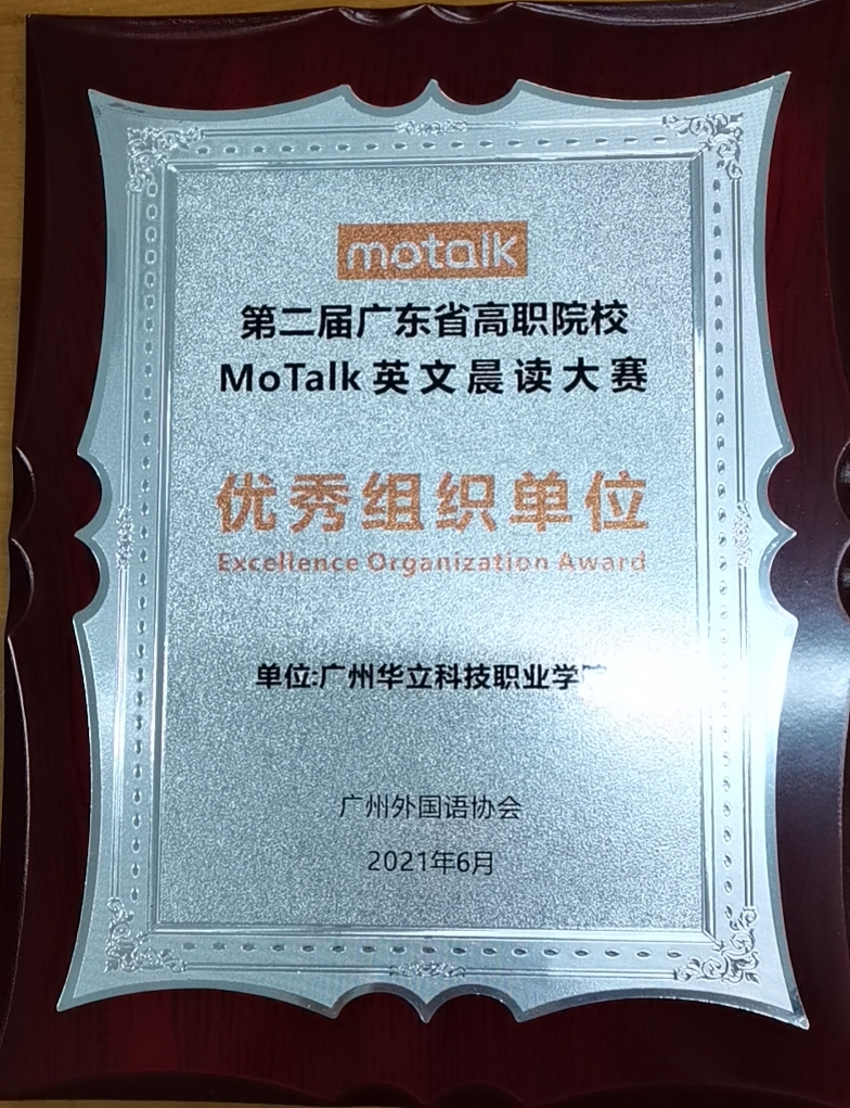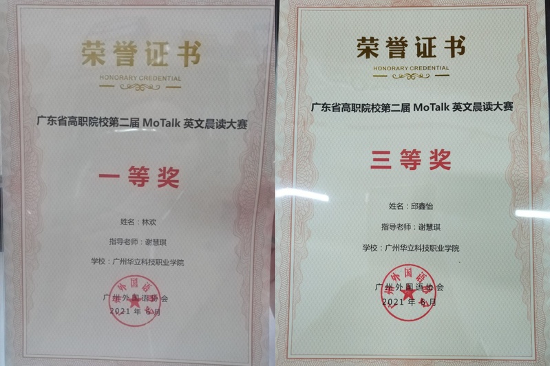 2021年4月至6月,我校多名同学参加了由广州外国语协会主办、广东理工职业学院、广东省外语艺术职业学院承办,广东粤图之星科技有限公司协办的广东省高职院校第二届MoTalk英文晨读大赛。在反复诵读中华国学经典以及党章文献的大赛过程中,我校同学不仅锻炼了英语口语能力,同时也品鉴到中国古往今来的文化之美。通过中英双语的形式领悟,更是能加深对两门语言中美的理解。