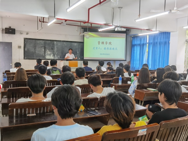 2021年9月23日下午,管理学院在西一三楼举行了2021级新生专业介绍会。与往年不同的是,此次专业介绍会分为工商企业管理与市场营销专场和电子商务专场两个会场。两个会场采用分时段分别在西一301和303进行。出席本次专业介绍会的有管理学院院长温伟胜、院长助理朱向平、校内教学主任汪蔚、工商企业管理系主任王润东、市场营销系主任康信恩、电子商务系主任黄英等老师。