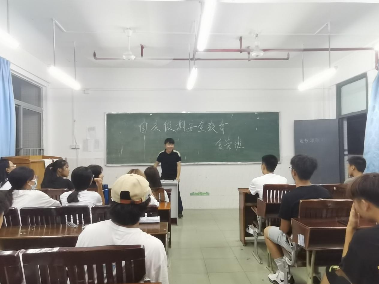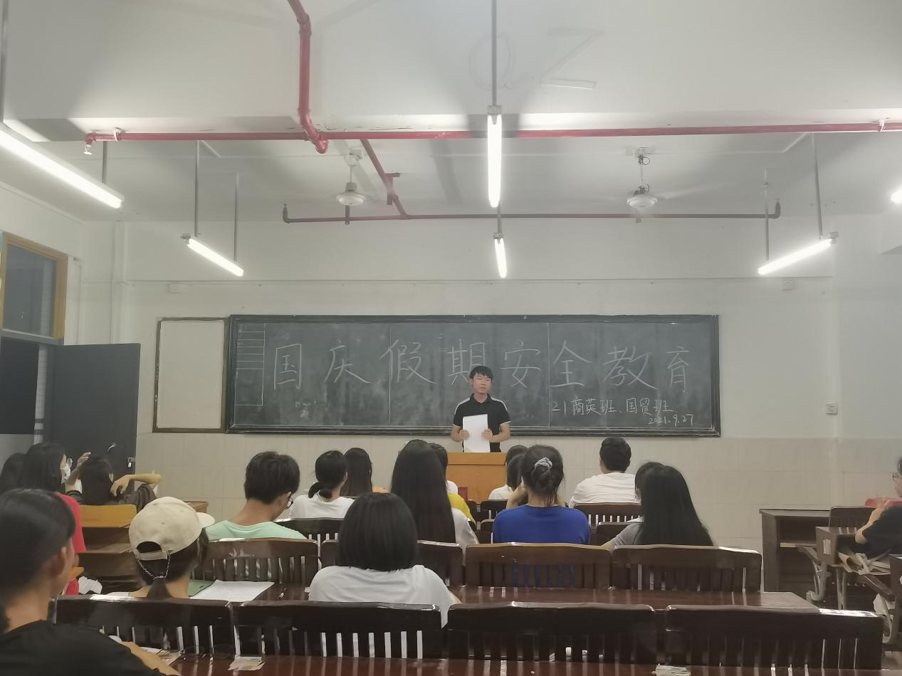 一年一度的国庆节即将来临,为让全体学生度过一个安全有意义的假期。2021年9月27日,财经学院21级辅导员郑庆国老师在各班开展了国庆节放假主题班会,对同学们进行了假期安全教育。