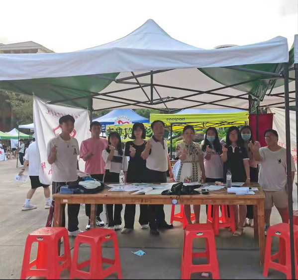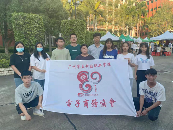 2021年9月24日,广州华立科技职业学院电商协会在专科综合楼对面水池旁边进行摆摊招新。