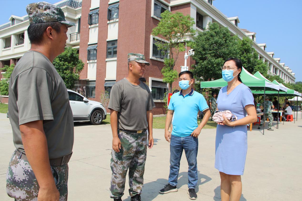 接着,领导亲自慰问一旁陪练的同学表达了关心,督促要注意好自己的身体。虽然他们因身体原因无法参与队列训练,但始终做到积极为同学服务,并遵守教官的训练安排,以自己的方式参与到军训生活中去。
