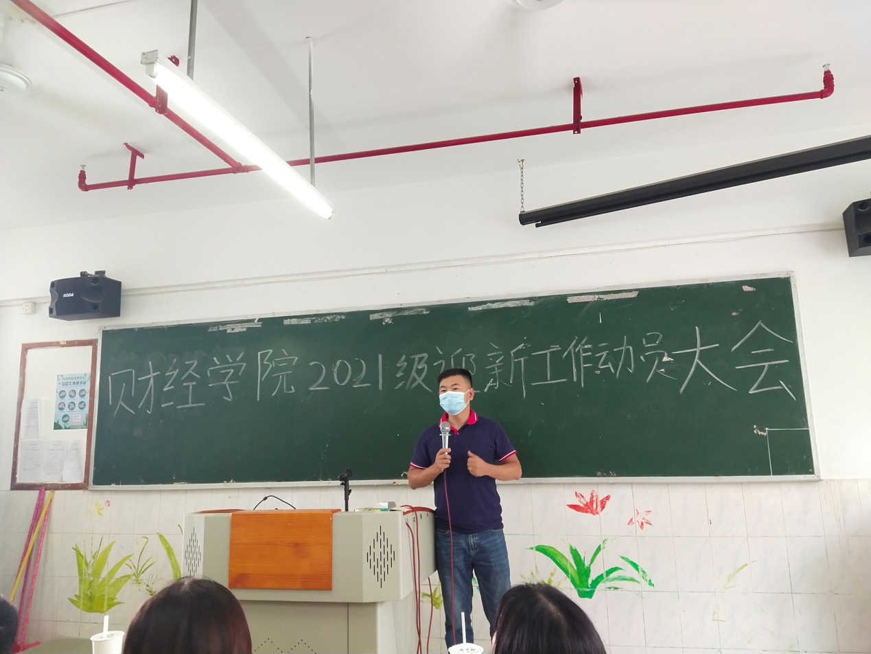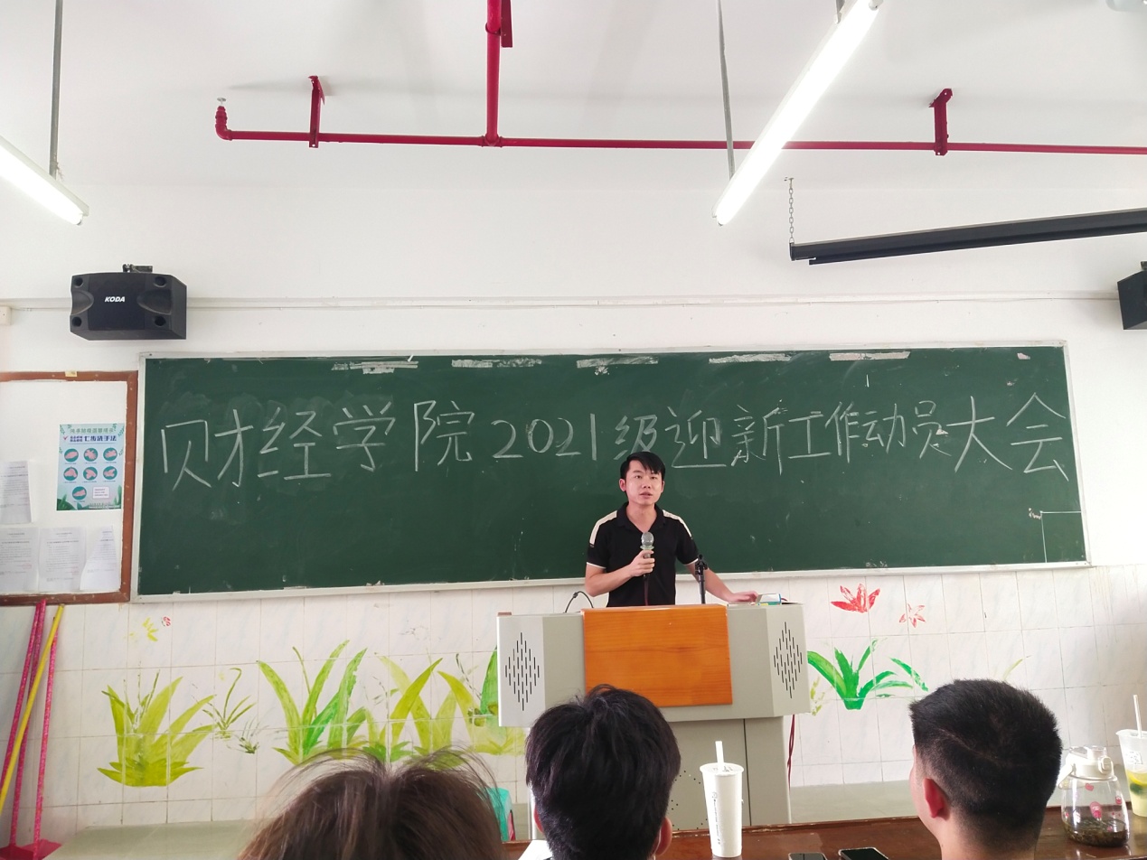 一年一度开学季,为新一学期迎新工作高效、有序的展开,我院于2021年9月3日中午12:30在西一401教室召开了财经学院2021级迎新工作动员大会。出席本次会议的嘉宾有: 财经学院学管主任刘伟鑫老师,财经学院团总支书记郑庆国老师和财经学院团总支学生会全体干部。