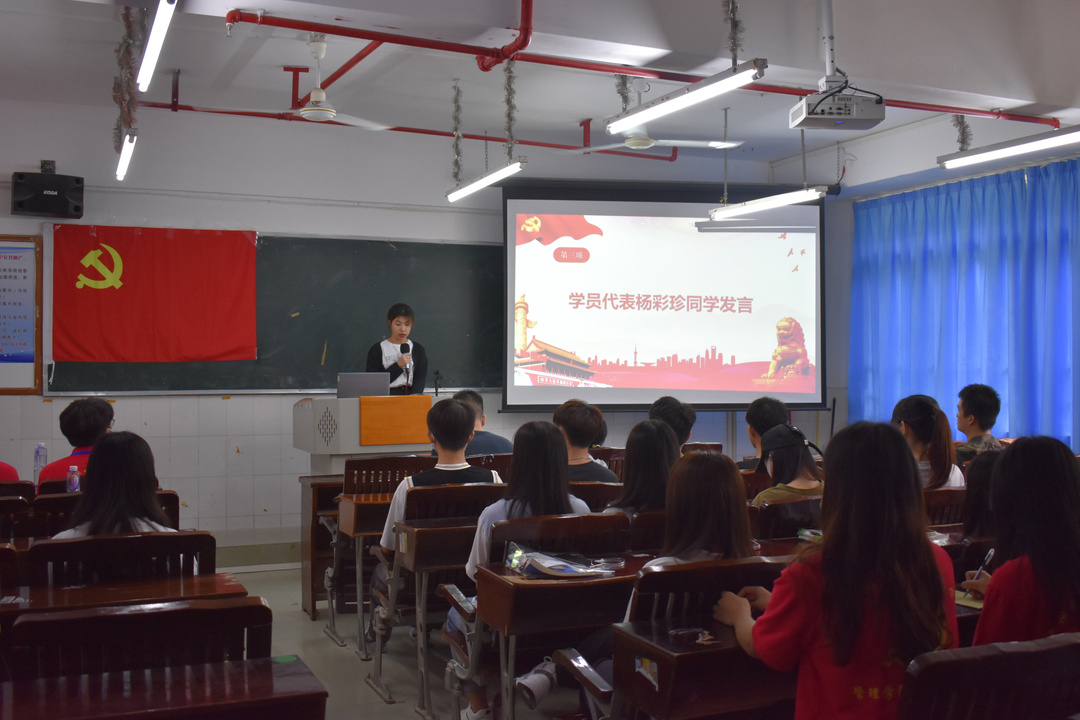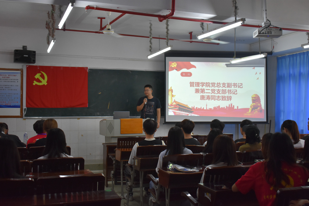 由管理学院党总支副书记(二支部书记)唐涛同志发言。唐涛同志明确指出:参加党校培训的同学们都得到了群众的认可,有机会参加党课学习,希望大家要认真端正态度,遵守党的纪律,严格要求自己,努力向党组织看齐。希望经过党校学习,都能顺利通过党校考试,进一步向党组织靠拢。