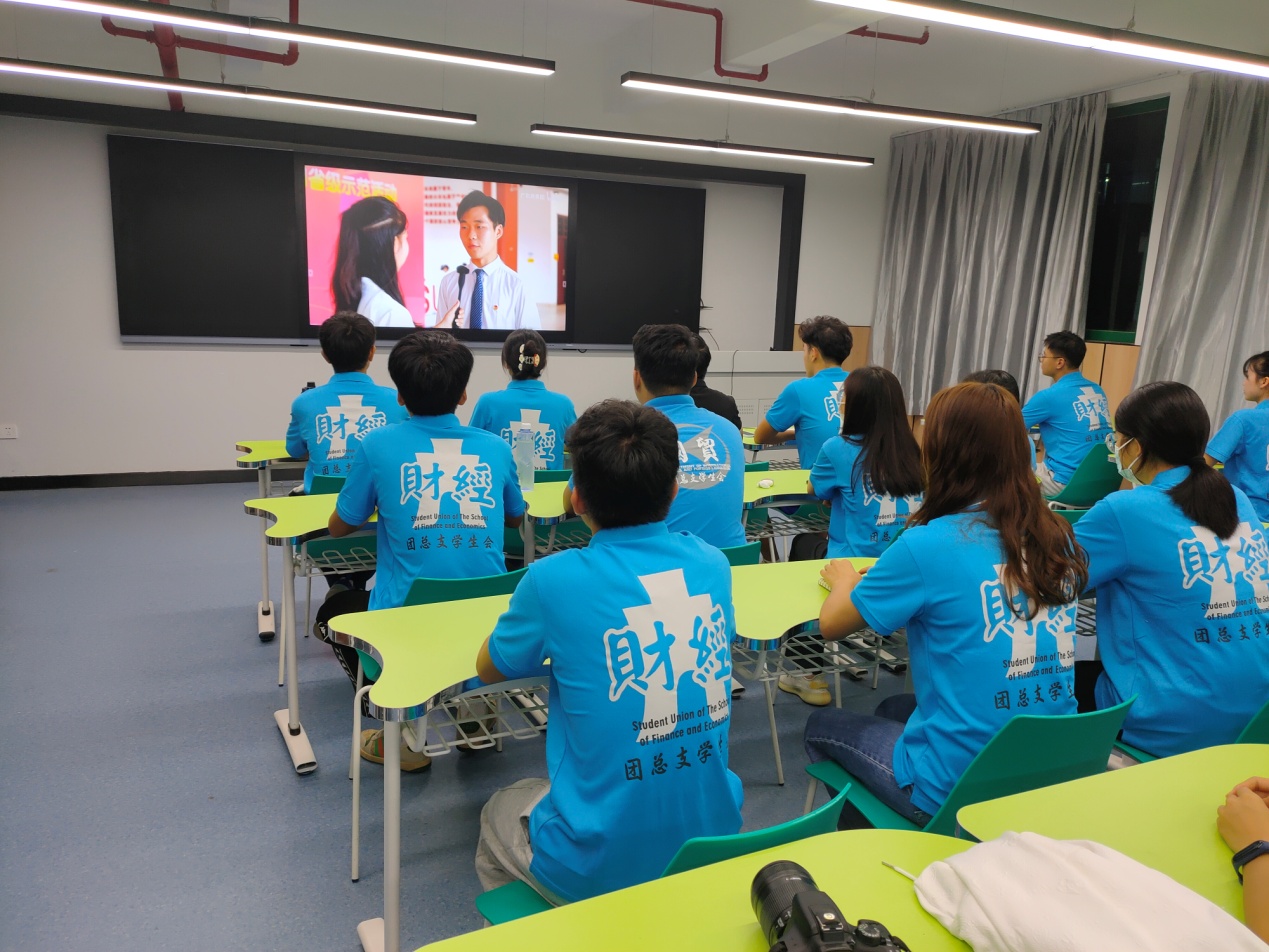 在会议过程中,郑国庆书记与学生干部共同观看了由广东共青团拍摄的青马公开课视频,视频中活动的参与者对活动的深度理解以及张永刚教师讲述的微团课都让同学们大受震撼,深刻难忘。随后郑国庆书记表示新时代的新青年要有不怕输的精神,即使身在低处,也要努力向上拼搏,不断突破自己。鼓励全体干部要积极参加活动锻炼自己,展现自己的舞台。同时,强调了要做有志气、有骨气、有底气的中国人