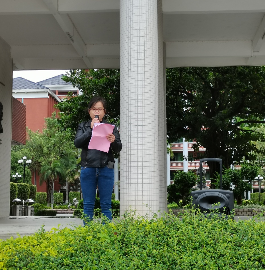 2021年11月8日早上7点,广州华立科技职业学院在综合楼广场举行第11周升旗仪式,本周升旗仪式的主题是“安全教育--中国消防宣传日”。此次升旗仪式由财经学院承办,由财经学院杨玲副院长发言。