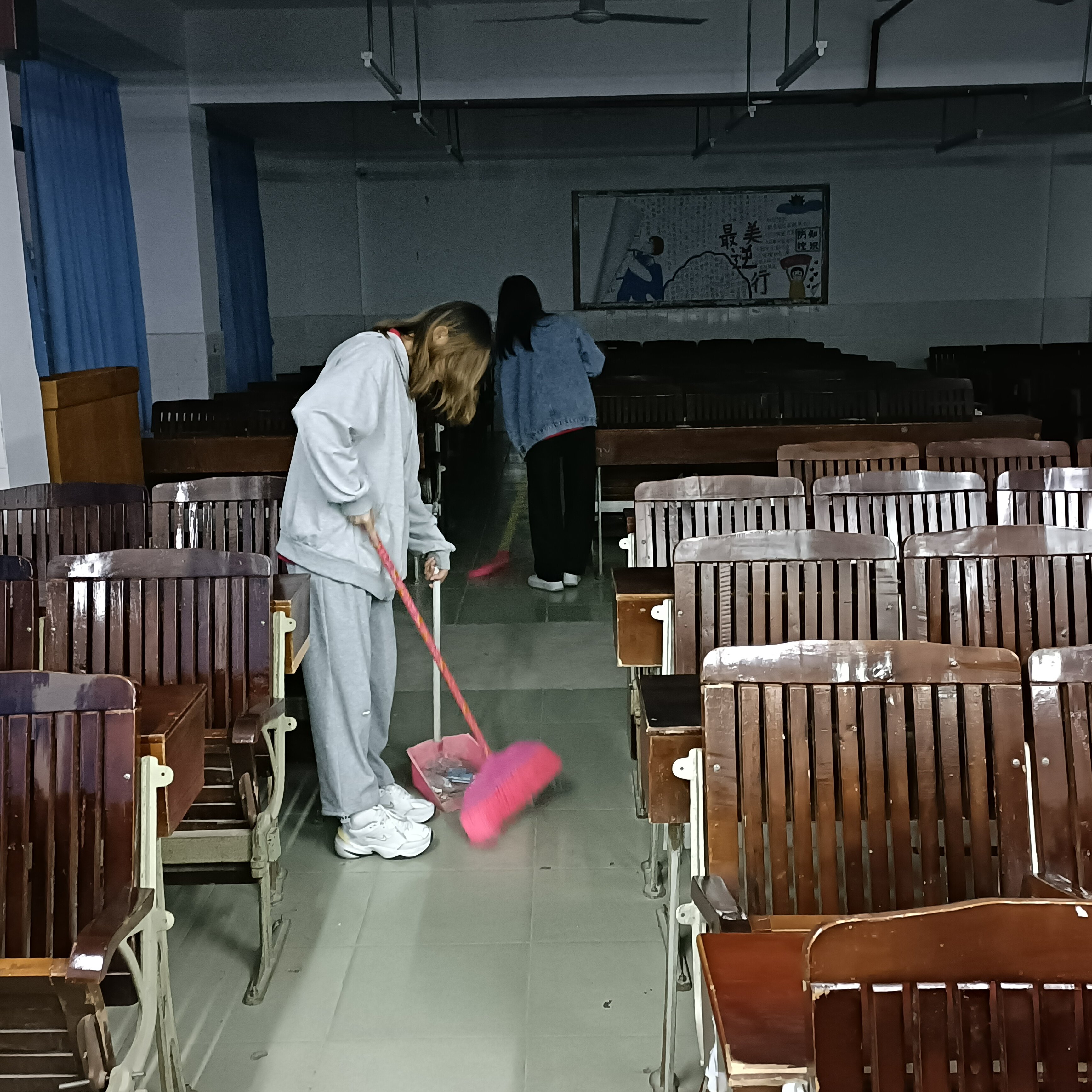 同学们拿起了垃圾袋、扫把、拖把、擦布,认真打扫教室的杂物,整个活动秩然有序,小组间分工明确,每个人都负责自己的打扫区域,活动最后我们将清理的垃圾处理分类,让资源得到合理利用,在大家的努力下,教室面貌焕然一新。