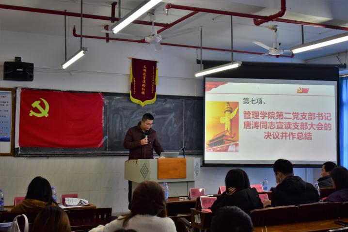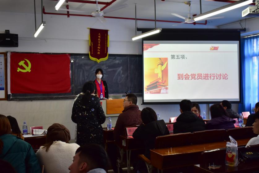 2021年12月29日于西一 309教室举行管理学院第二党支部2021年第四批预备党员通表大会,参会人员有:管理学院党总支书记郭仲先同志,管理学院党总支副书记兼第二党支部书记唐涛同志,第一党支部书记康信恩同志,第二党支部组织(宣传)委员陈媛同志,第二党支部纪检委员戴双雅同志,教师党员、学生党员和党建小组成员。本次会议由黄金婵同学主持。