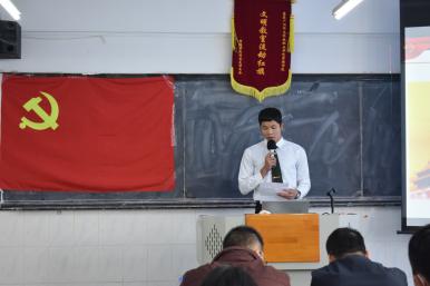 首先由管理学院党总支书记郭仲先同志发表讲话,他说道回顾党的百年历史,是一代代共产党人用鲜血换来的幸福生活。在党的百年华诞之际加入中国共产党是一件光荣而又自豪的事情,我们要珍惜党员的身份,多为社会主义建设贡献自己的力量。