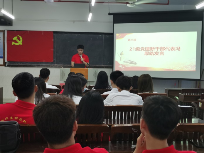 由新一届党建干部代表冯厚皓发言,他表达了自己对建设更好党建小组的决心,在接下来的工作中会牢记师兄师姐的教诲,不断提高自己的能力,带领党建小组不断前行,不负领导老师以及同学们的信任。