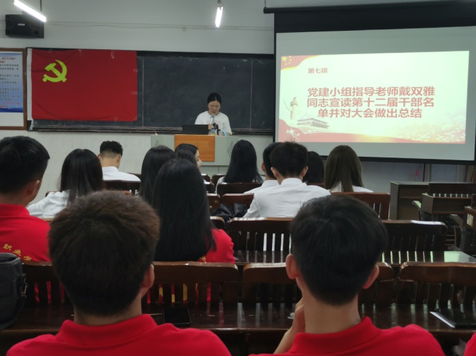 党建小组指导老师戴双雅同志宣读第十三届干部名单并对大会做出总结,她表示感谢20级各位党建干部们对党建小组的贡献,同时对于新上任的干部,要在其位谋其职,要拥有更强的、团队意识、责任感和使命感,还要对待工作时严谨认真,高质量地完成自身的工作。最后她希望大家能够把经历过的挫折和所得到的荣誉都当作是自己成长的一种磨炼,同时也希望新一届党建干部能够继续传承党建小组一直以来的优良传统,共同努力把党建小组建设的更好。
