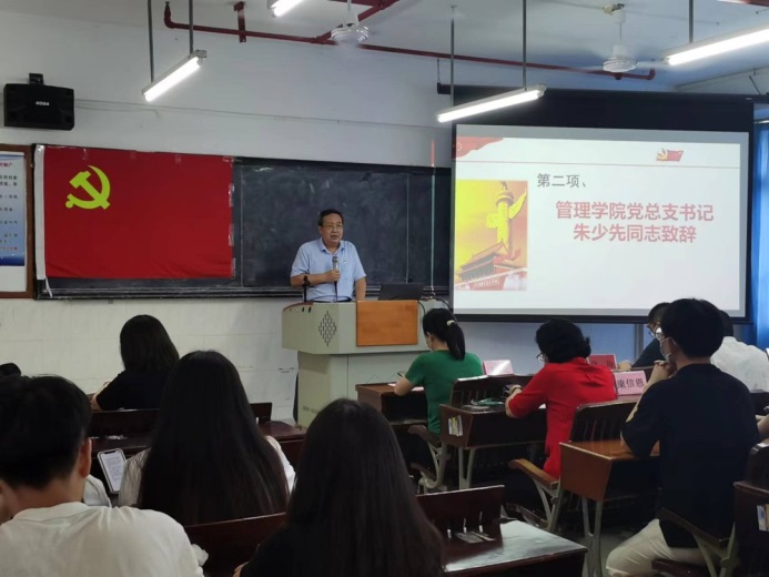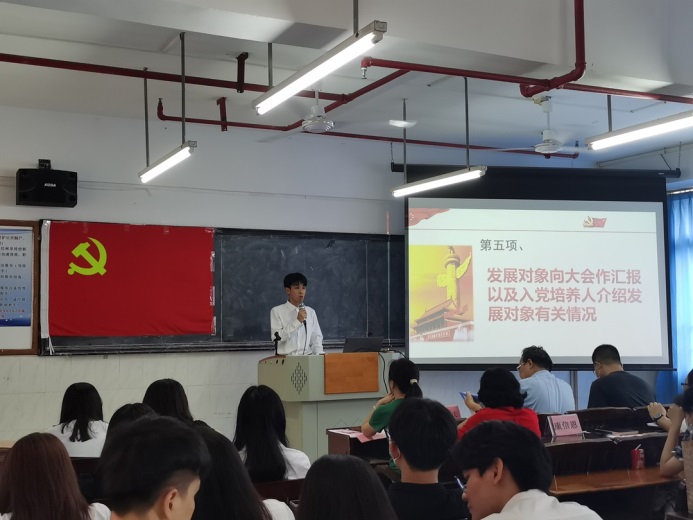 首先,由管理学院党总支书记朱少先同志上台致辞。他指出:“做”一名合格共产党员,必须认清重大问题,坚定理想信念,这是做一名合格党员的动力源泉。发展对象要时刻牢记自己入党的初心,坚定自身的理想信念,在入党之后要更加珍惜这来之不易的机会,在思想上、学习上更加认真,在工作上更加努力,不辜负学校领导老师的悉心栽培。