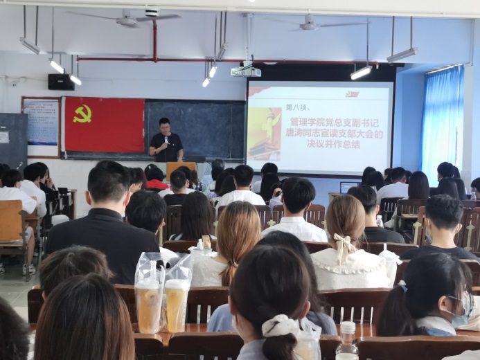 最后,由党总支副书记兼第二党支部书记唐涛同志宣读支部大会的会议并作总结。