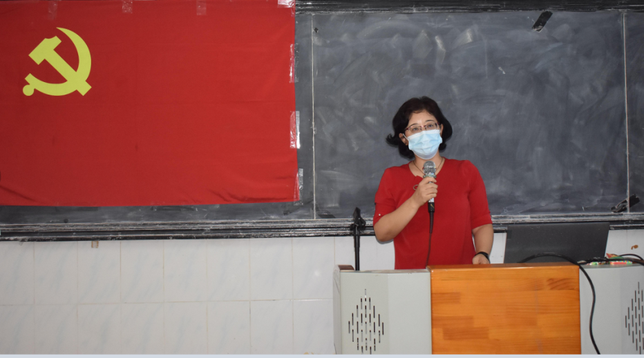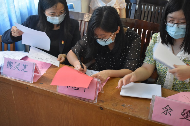 第一党支部副书记余曼同志、第二党支部组织(宣传)委员陈媛同志、第二党支部纪检委员戴双雅同志、教师党员、