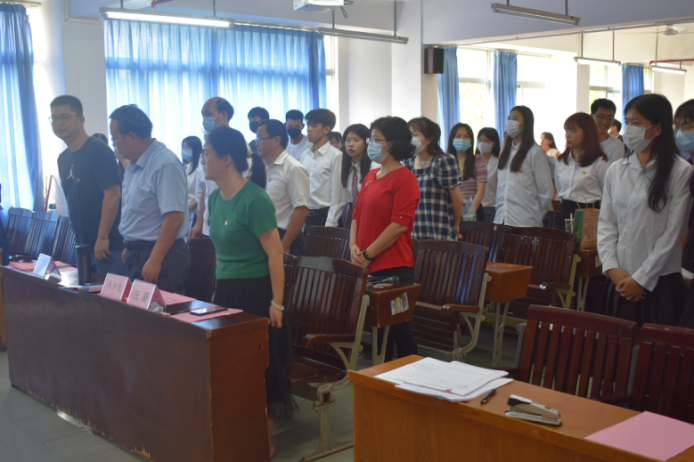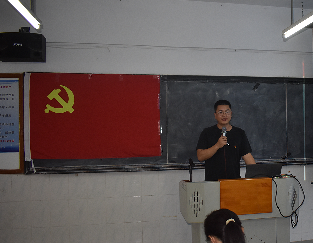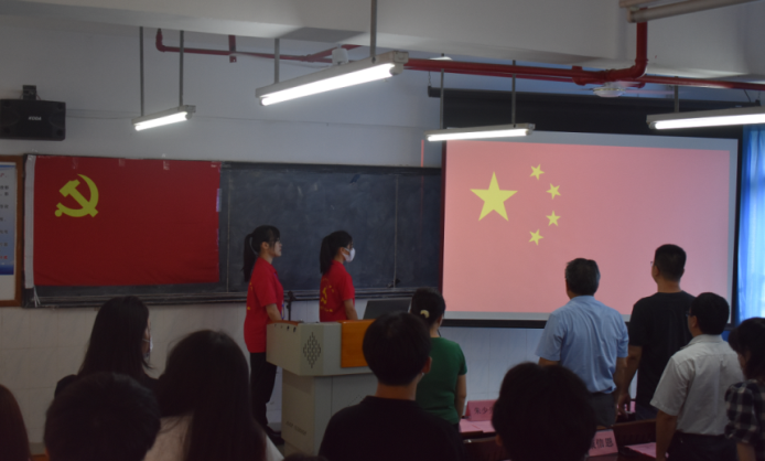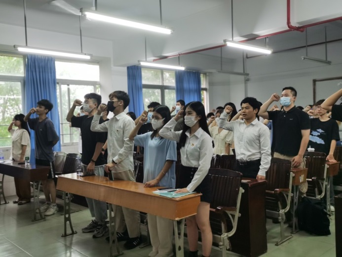 第五、紧接着由管理学院第二党支部组织(宣传)委员陈媛同志带领全体党员重温入党誓词。