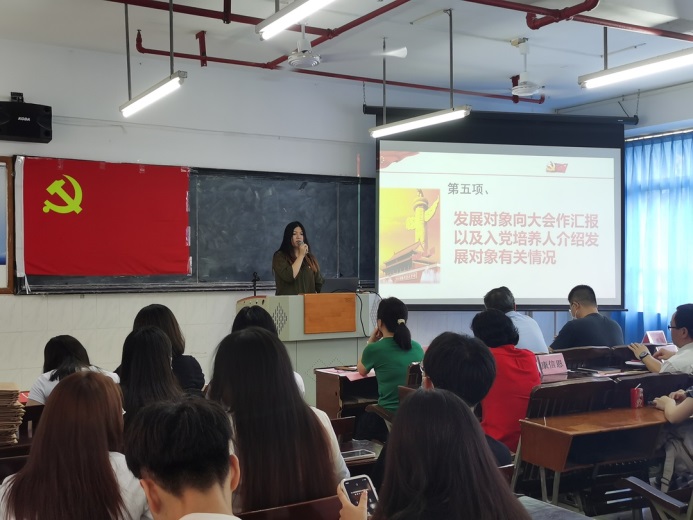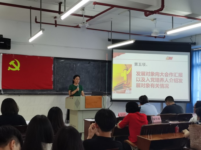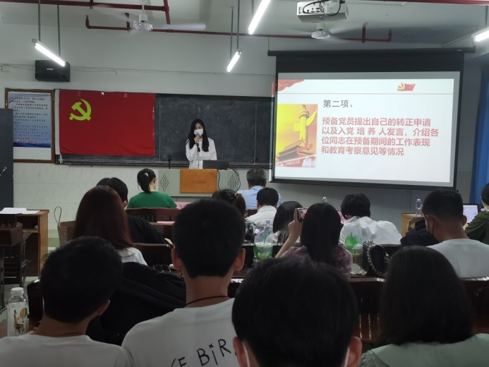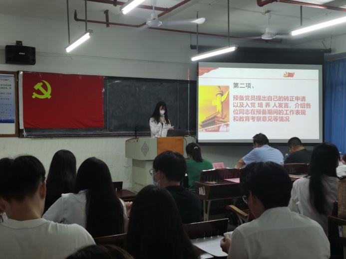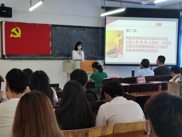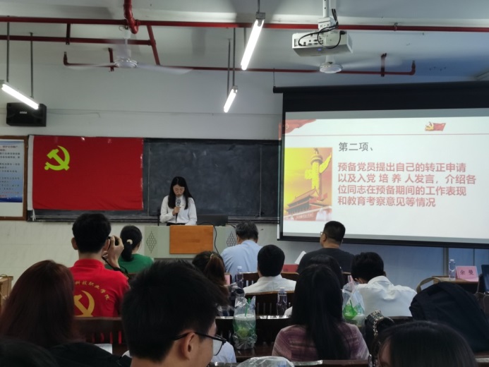第二、由入党培养人汪蔚等同志对孙明娟等30名同志在预备期间的表现情况向支部进行汇报。从学习,思想,工作,生活等方面对30位预备同志提出了肯定并且对不足之处提出了建议。