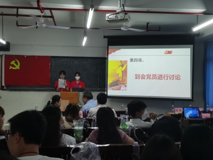 参会人员:管理学院党总支书记朱少先同志,党总支副书记兼第二党支部书记唐涛同志,第一党支部书记康信恩同志,第一党支部副书记余曼同志,第二党支部组织(宣传)委员陈媛同志,第二党支部纪检委员戴双雅同志,教师党员、学生党员及党建小组成员。