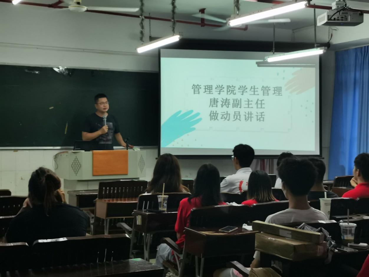 管理学院党总支副书记兼学生管理唐涛副主任做动员讲话
