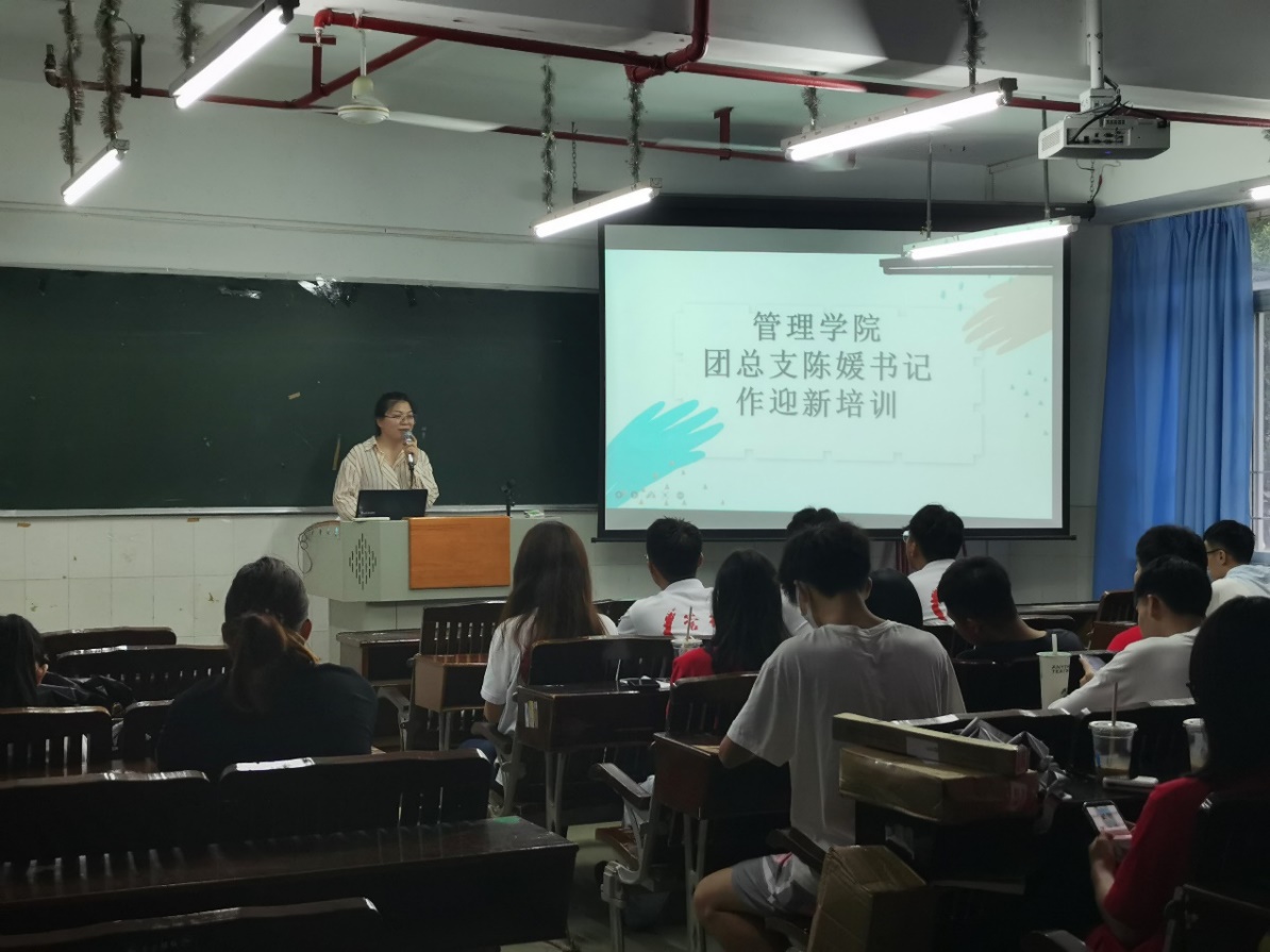 为确保迎新工作安全有序地进行,使我院学生干部、志愿者明确迎新工作要求,保证本次迎新工作的顺利开展,管理学院于2022年8月31日18:00在西一303召开2022级迎新动员大会,出席本次会议的领导及嘉宾有:管理学院党总支副书记兼学生管理副主任唐涛老师、团总支书记陈媛老师以及党建小组和团总支学生会全体成员。