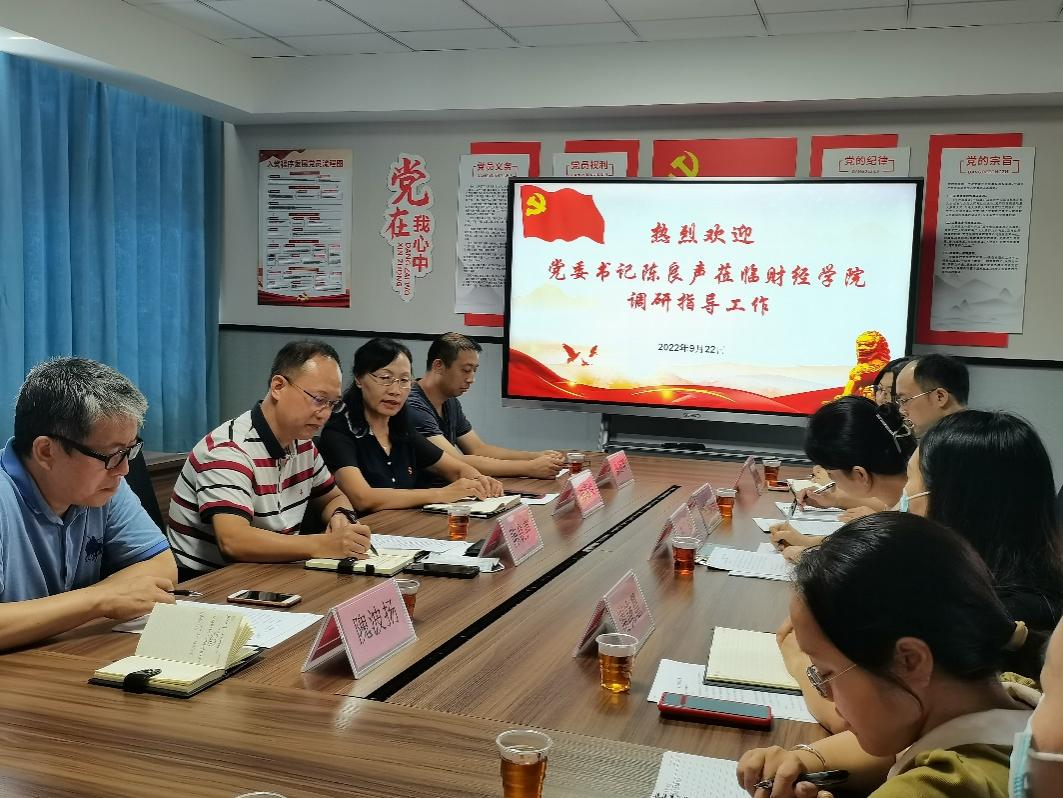 9月22日上午,学校党委书记陈良声来到财经学院就学院发展建设情况进行全面调研,同行的有党办主任隗波扬。财经学院在西一614会议室向陈书记一行进行工作汇报,财经学院院长刘惠玲,各线主任、系主任及全体教师党员参加。