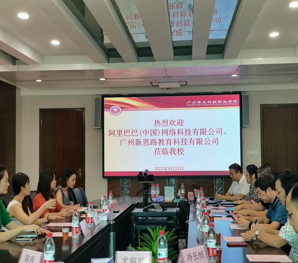 2022年6月广州华立科技职业学院与阿里巴巴(中国)网络技术有限公司签订了“共建阿里巴巴国际站数字贸易人才基地”合作协议,9月23日下午,“阿里巴巴国际站数字贸易人才基地”授牌仪式在广州华立科技职业学院行政楼305举行。出席授牌仪式的有广州华立科技职业学院易健民校长,陈显强副校长,校外教学与就业管理处钟文浩处长,财经学院刘惠玲院长,财经学院朱向平副院长,及财经学院教师代表,阿里巴巴国际站南粤大区商家发展客运专家谭晓莉经理,广州新思路教育科技有限公司马茜茜副总经理,运营部杜晓麟经理,企业部江倩雯经理。授牌仪式由财经学院校外教学主任黄冠霖主持。